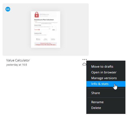 Further statistics for individual projects can be found under the “Info & stats” option of the project menu which can be accessed from the “…” item under each project.