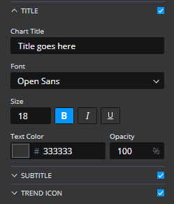 Font / Size / Text Color / Opacity – These properties control the appearance of the title or subtitle’s text.