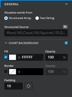 * **Opacity Range** - applies opacity heat mapping to the values on the word cloud display.