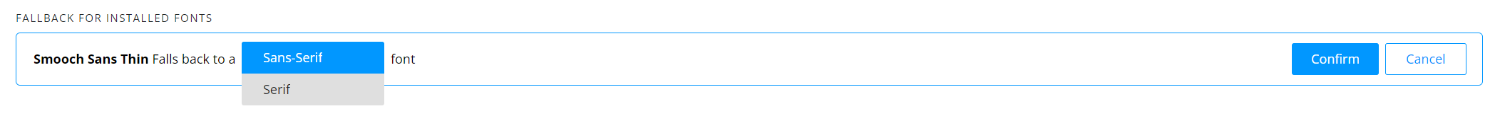 To change the default fallback state, select the 'Edit' buttons and select the dropdown to choose between **Sans-serif** or **Serif.**