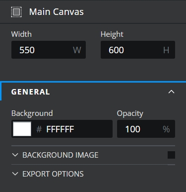 In the properties panel, resize the canvas by changing the width and height values to the following: